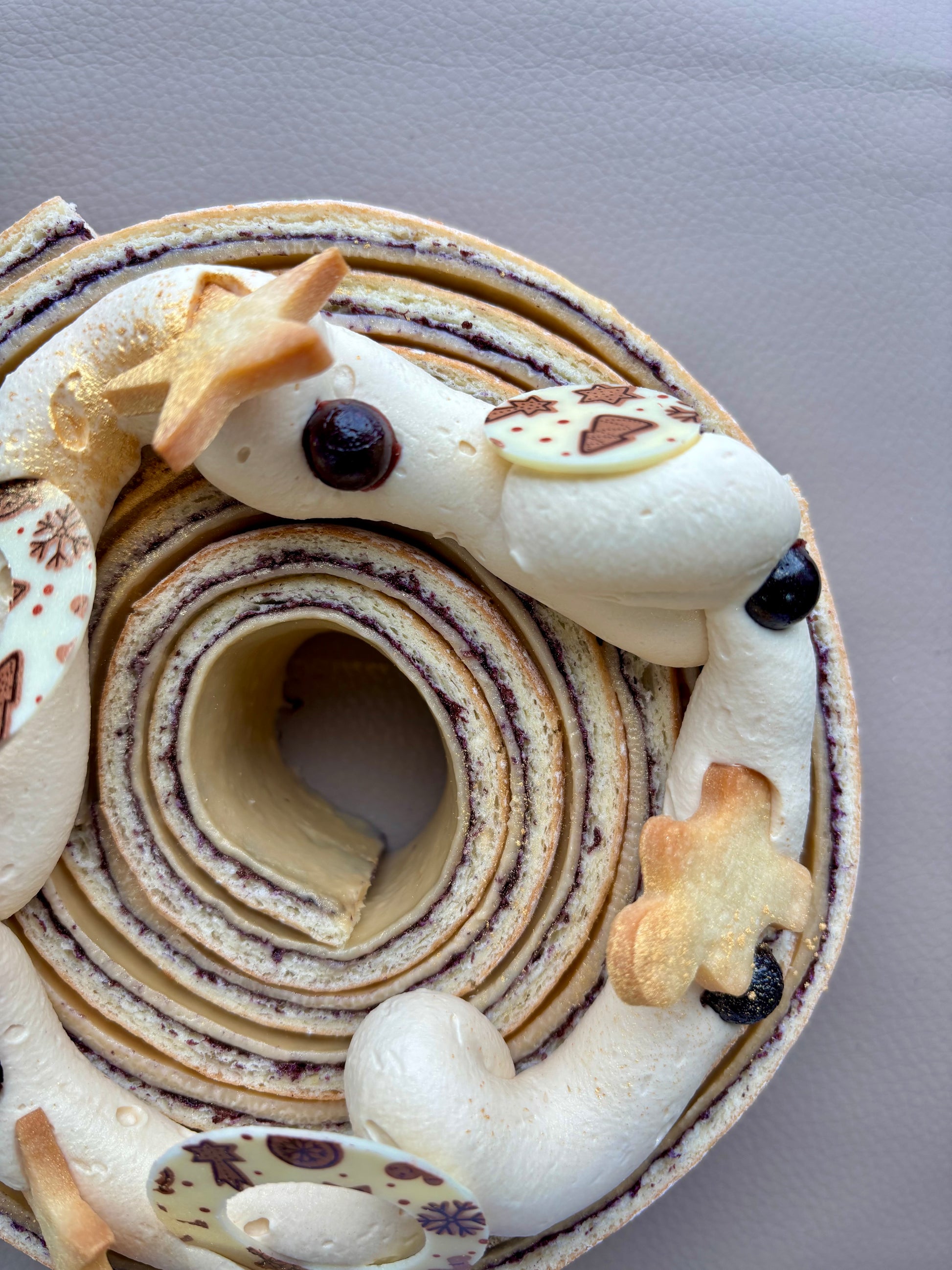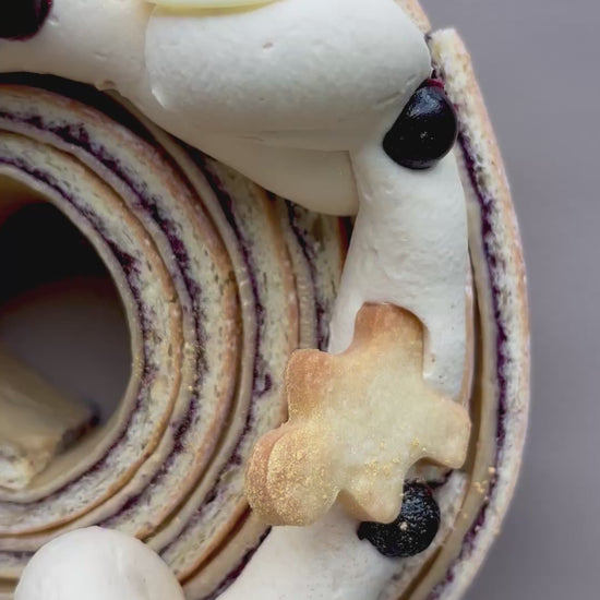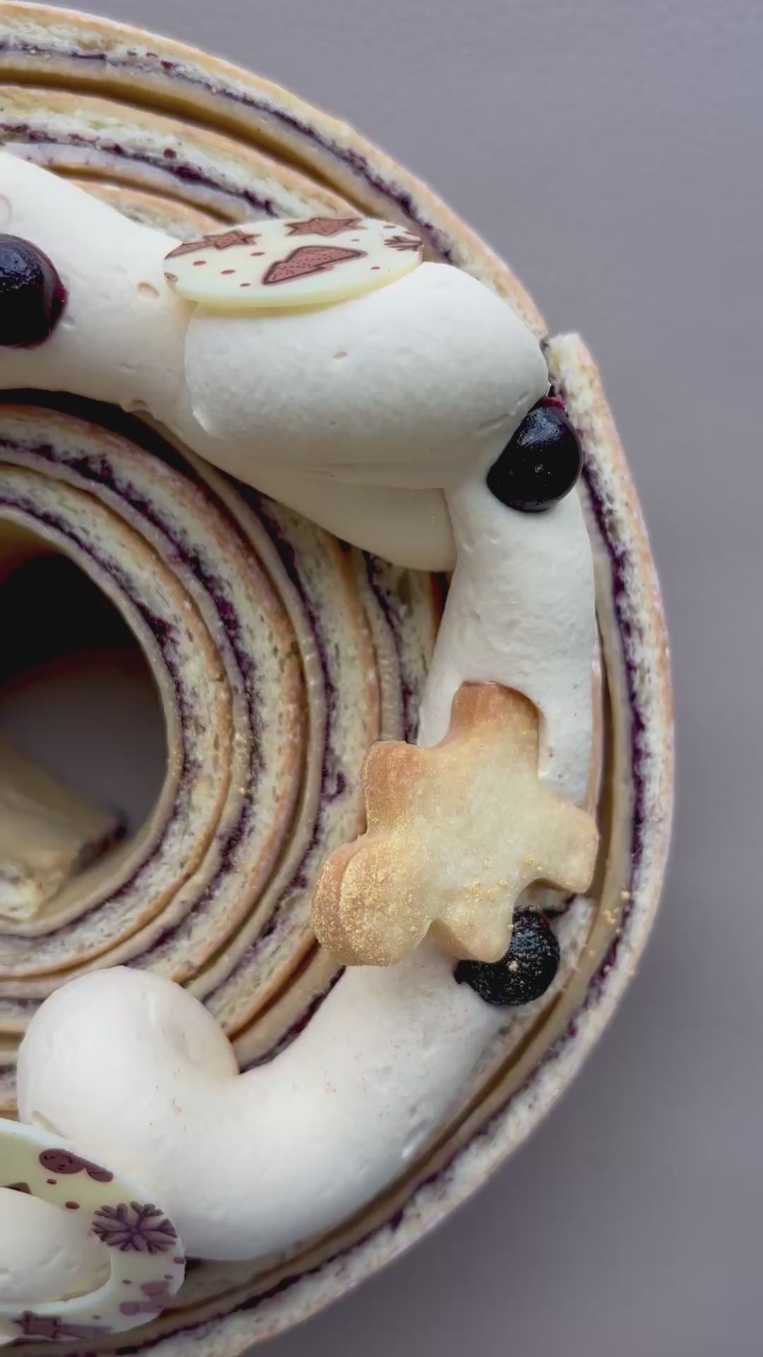 Cette année, je vous offre une version festive de mon gâteau signature! Le classique biscuit viennois moelleux et aérien garni d'un confit de bleuets sauvages et d'un crémeux à l'érable fait avec le délicieux sirop d'érable biologique de chez Jasmino. Le tout garni de jolis petits détails festif pour rendre votre table de Noël encore plus belle!